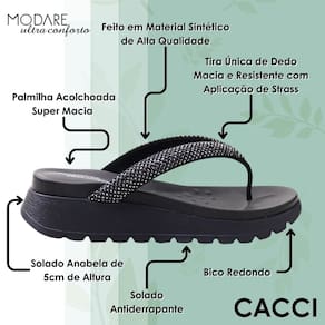 Estabilidade e segurança: solado antiderrapante e solado anabela, que oferecem equilíbrio e segurança a cada passo.