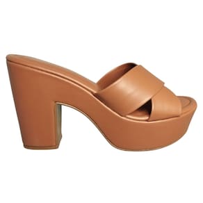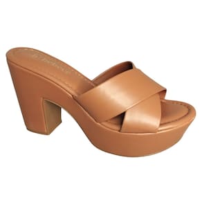 Com as tiras em X, o tamanco proporciona um ajuste seguro e charmoso. A plataforma meia pata oferece altura extra sem comprometer a estabilidade, garantindo conforto durante todo o dia. O acabamento em napa adiciona um toque sofisticado e moderno ao design.