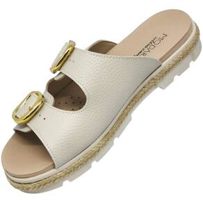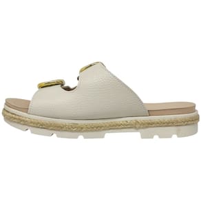 A palmilha é suave, anatômica e proporciona sensação de maciez a cada passo, ideal para uso prolongado. O solado robusto conta com acabamento em corda trançada ao redor da base, detalhe que traz um toque casual elegante, enquanto a sola emborrachada com frisos garante firmeza e segurança ao caminhar.