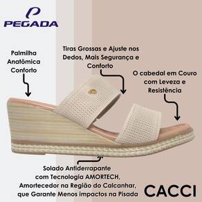 Os calçados Pegada são produzidos em couro, matéria prima de alta qualidade, que oferece conforto, maciez, resistência e muita durabilidade.