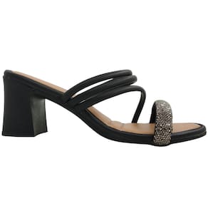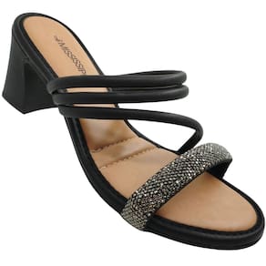 Tamanco Feminino Casual Social Dia a Dia Passeio com Strass Salto Médio Conforto Mississipi MC411 - 33 - Preto