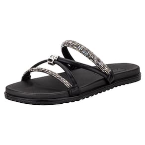 Tamanco Feminino Flat Beira Rio 8529102, confeccionada em Tira Pronta Glamour, Tira Pronta Metal Shine Glamour e Tira Pronta, oferece elegância e conforto. Palmilha em EVA e sola em TR proporcionam durabilidade e segurança. Acabamento colado e costurado garante resistência.