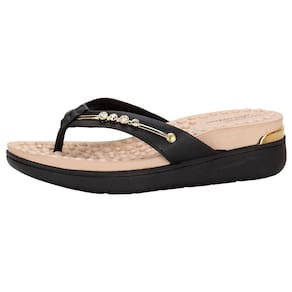 O Tamanco Feminino Flat Modare é confeccionado em Napa Floather com acabamento em costura, palmilha em EVA com relevos que massageiam os pés e solado em borracha antiderrapante com salto de cinco centímetros.
