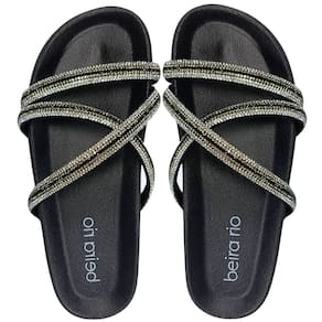 O tamanco Beira Rio combina elegância e conforto em um design estilo papete chinelo slide. Possui tiras resistentes decoradas com strass, proporcionando um toque de brilho e sofisticação ao calçado. O solado flat oferece leveza e conforto, ideal para o uso diário.
