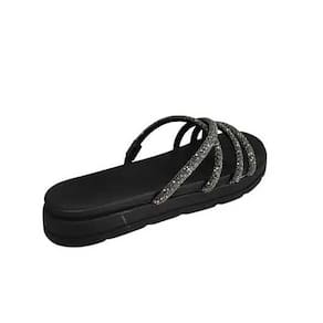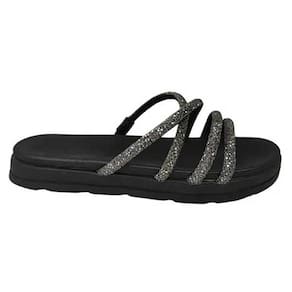 Tamanco Feminino Moleca Flatform Tiras Brilhantes - 34 - Preto