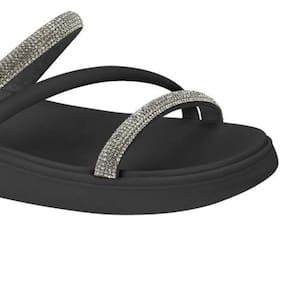Ao mesmo tempo que a flatform papete brilho feminina é estilosa e moderna ela fica delicada devido as pedrinhas e tirinhas finas.