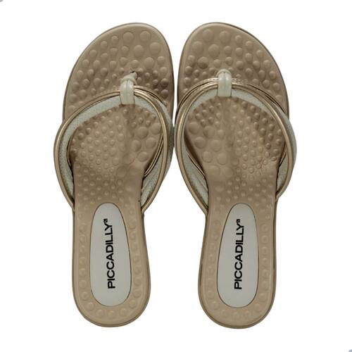Tamanco Feminino Piccadilly Off White com Ouro - 35 - Amarelo Ouro