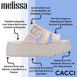 A Melissa Pump Platform é a escolha ideal para quem busca impacto visual com praticidade no cotidiano. O formato slide facilita o calce, enquanto a plataforma cria uma silhueta atual e marcante. As tiras largas no cabedal abraçam o pé com segurança, compondo um visual moderno que transita do casual urbano a produções descontraídas com elegância.