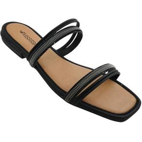 O salto baixo de aproximadamente 2 cm é elegante e leve, garantindo estabilidade ao caminhar, além de proporcionar um leve aumento na estatura, valorizando a silhueta feminina. O detalhe que faz toda a diferença fica por conta das aplicações metalizadas nas tiras, que adicionam um toque de sofisticação e modernidade ao modelo. Seja para um passeio no parque, um dia de compras ou um happy hour com as amigas, esse tamanco te acompanha em qualquer ocasião, garantindo um look moderno e cheio de estilo.