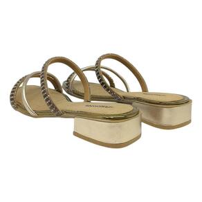 Macias e ajustáveis ao pé, as tiras metalizadas com detalhes em brilho trazem um charme especial, deixando o look ainda mais feminino e elegante.