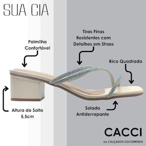 Desenvolvido com a exclusiva tecnologia Sua Cia, este tamanco proporciona um conforto incomparável. O salto baixo garante estabilidade, enquanto as tiras abraçam seus pés com suavidade, permitindo que você desfrute de longos períodos de uso sem comprometer o conforto.