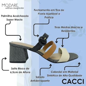 Segurança e estabilidade: solado antiderrapante e salto bloco, ideal para um caminhar confiante e confortável.