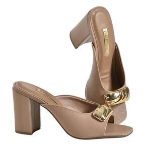 O cabedal conta com um enfeite metálico cromado que se destaca, trazendo um toque moderno e sofisticado. O design de bico quadrado aberto valoriza a silhueta dos pés, deixando o visual ainda mais elegante e atual. Além disso, o modelo é de fácil calce, tornando o uso prático para o dia a dia e para momentos em que a pressa pede conforto aliado à beleza.