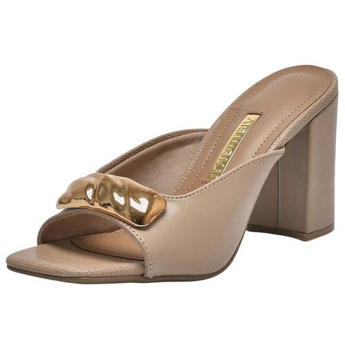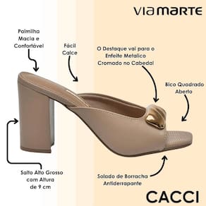 O cabedal conta com um enfeite metálico cromado que se destaca, trazendo um toque moderno e sofisticado. O design de bico quadrado aberto valoriza a silhueta dos pés, deixando o visual ainda mais elegante e atual. Além disso, o modelo é de fácil calce, tornando o uso prático para o dia a dia e para momentos em que a pressa pede conforto aliado à beleza.