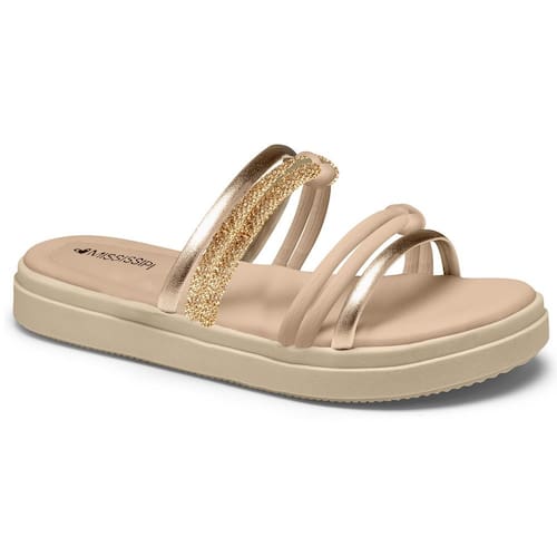 Tamanco Flatform Mississipi MB511 Feminino - Nude/Dourado.