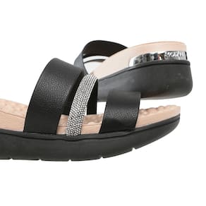 Design com Três Tiras: A tira central possui aplicação em strass, adicionando um toque de brilho e sofisticação.