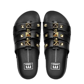 Esse tamanco é a escolha ideal para mulheres que buscam um calçado que ofereça o máximo de conforto sem abrir mão do estilo e da praticidade. As três tiras largas proporcionam um ajuste perfeito aos seus pés, garantindo conforto e segurança ao caminhar. Os detalhes metalizados adicionam um toque de charme e sofisticação ao seu visual. O solado emborrachado tratorado oferece maior segurança e estabilidade ao caminhar.