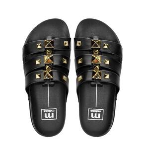 Esse tamanco é a escolha ideal para mulheres que buscam um calçado que ofereça o máximo de conforto sem abrir mão do estilo e da praticidade. As três tiras largas proporcionam um ajuste perfeito aos seus pés, garantindo conforto e segurança ao caminhar. Os detalhes metalizados adicionam um toque de charme e sofisticação ao seu visual. O solado emborrachado tratorado oferece maior segurança e estabilidade ao caminhar.