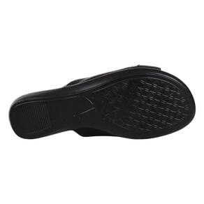 Confeccionado em material de alta qualidade e durabilidade.. Conta com palmilha muito macia, forro acolchoado e solado com salto Anabela medindo 2,5 cm de altura, garantindo conforto e estabilidade ao caminhar.. Modelo slide, com sistema calce fácil garantindo praticidade na sua rotina.. Seu destaque se dá pela faixa no cabedal com pontilhados e aplicação metalizada sobre os pés.. Pode ser usada no dia a dia, lazer ou ocasiões casuais..