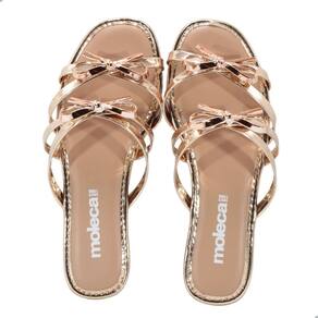 Tamanco Rasteira Feminina Moleca Metal Glamour Ouro Rosado - 38 - Rosa