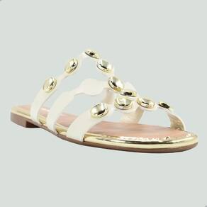Tamanco Rasteira Feminina Moleca Napa Turim Metal Glamour Branco Off Dourado - 36 - Branco