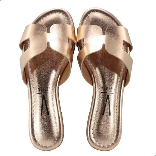 Tamanco Rasteira Vizzano Metalizado Ouro Rosado - 40 - Rosa