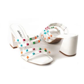 Monocolor do cabedal ao salto, o Tamanco Dakota de Salto Bloco Branco destaca seu visual minimalista e atemporal! Formada por tiras finas que envolvem o peito do pé, o modelo ainda conta com o salto bloco de 5,5 cm que garante conforto e elegância. O toque de moda fica por conta das aplicações de tachinhas coloridas nas tiras, que dão um toque de cor e alegria para seus looks!