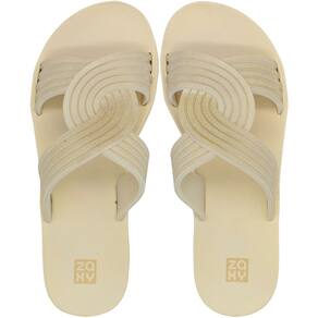 Tamanco Slide Zaxy Rasteiro Chic Tiras Entrelaçada Feminino - 35 - Bege