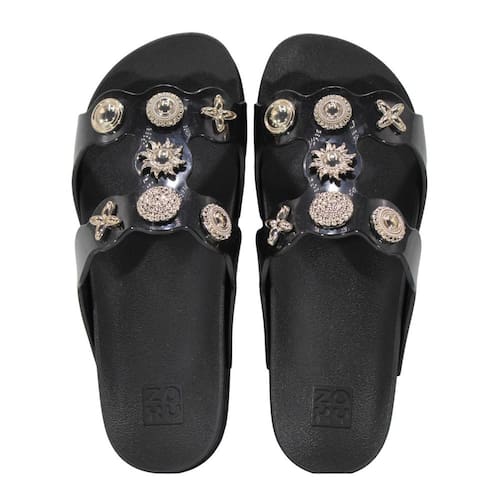A Plataforma Charms Zaxy traduz o espírito da moda jovem com uma estética boho atual. As tiras com linhas onduladas faz referência aos recortes inspirados em cintos, enquanto a sola anatômica da marca garante conforto no uso diário. O grande diferencial do modelo são os apliques metálicos removíveis e customizáveis, que podem ser aplicados em diferentes partes do cabedal, permitindo criar combinações exclusivas. Com símbolos icônicos, como o sol, esses detalhes transformam a sandália em um item versátil, criativo e cheio de personalidade.