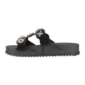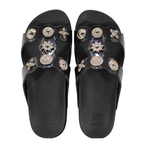 A Plataforma Charms Zaxy traduz o espírito da moda jovem com uma estética boho atual. As tiras com linhas onduladas faz referência aos recortes inspirados em cintos, enquanto a sola anatômica da marca garante conforto no uso diário. O grande diferencial do modelo são os apliques metálicos removíveis e customizáveis, que podem ser aplicados em diferentes partes do cabedal, permitindo criar combinações exclusivas. Com símbolos icônicos, como o sol, esses detalhes transformam a sandália em um item versátil, criativo e cheio de personalidade.