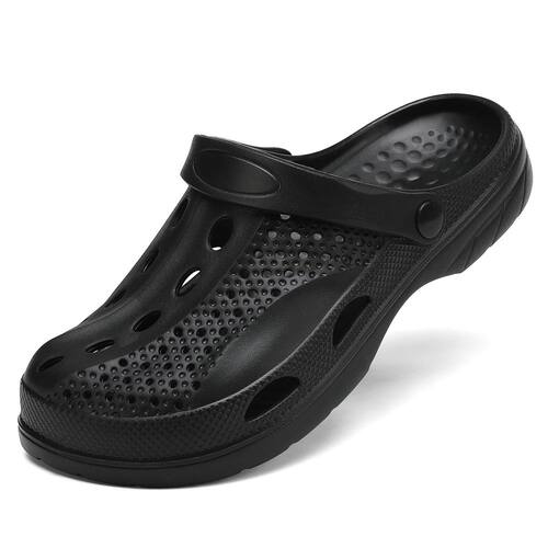 SOSOWHLTE Tamancos masculinos femininos com suporte de arco, unissex, sapatos de jardim, confortáveis, chinelos para uso ao ar livre para praia casual, Preto - ?Confortável e leve?Os tamancos de jardim unissex para homens e mulheres são feitos com material EVA leve que oferece uma sensação acolchoada a cada passo, garantindo um ajuste confortável. Bom para longas horas de uso, seja em casa ou ao ar livre - ?Ótimo suporte de arco? Tamancos femininos com suporte de arco, estes tamancos ajudam a aliviar o cansaço do pé e oferecem maior estabilidade, ajudando a absorver o choque e reduzir o desconforto em seus pés. Seja para jardinagem, caminhada na praia ou atividades ao ar livre, estes tamancos oferecem o conforto que você precisa - ?Design respirável?Os tamancos de jardim para homens e mulheres, a parte superior e as laterais desses tamancos de jardim apresentam vários orifícios de ventilação que melhoram a respiração, mantendo seus pés secos. Tamanco masculino ótimo para clima quente, estes tamancos respiráveis manterão você fresco - ?Antiderrapante e resistente?Tamancos femininos projetados com sola texturizada ondulada, nossos tamancos oferecem excelente tração antiderrapante. Se você estiver andando em superfícies molhadas ou secas, o design antiderrapante garante que você fique estável a cada passo - ?Todas as ocasiões?Sapatos masculinos adequados para uso interno e externo, incluindo quartos, cozinhas, jardins, piscinas, praias, pesca e acampamentos. O design leve e confortável garante que seus pés permaneçam apoiados durante todo o dia