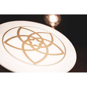 Diâmetro: 16 40,64 cm Materiais: Carvalho Siam / Pele de cabra selecionada à mão Característica 1: Pegada confortável Característica 2: Tons quentes, ricos e ressonantes Cor: Marrom Nogal Modelos Disponíveis: Venus Flower; Tree of Life Marca: Não Informado Ean: 840553018066