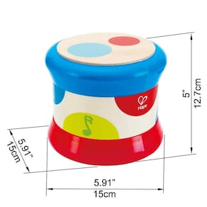 Portátil e Prático: Com dimensões de 15x12,9x15 cm e peso de 0,435 kg, o tambor é fácil de transportar e adequado para crianças de 6 meses a 36 meses.