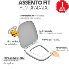 QUALIDADES ? Espessura maior que os assentos comuns – mais conforto e maciez. ? Material antifungo e proteção contra bactérias. ? Tampa envolvente que evita acúmulo de sujeiras. ? Fácil instalação – não necessita de ferramentas. ? Acabamento em alto brilho, elegante e moderno.