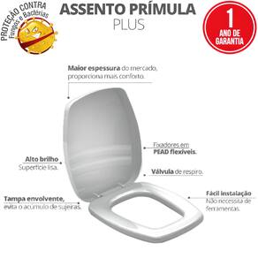 O Assento Sanitário Plus Linha Prímula proporciona conforto e durabilidade de uso.