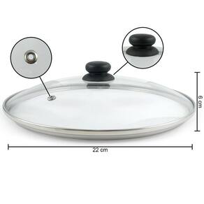 - Uso domestico - Tampa de vidro temperado - Compatível com qualquer panela - Pegador em baquelite térmico - Resistente a altas temperaturas - Somente uma tampa de 22 cm