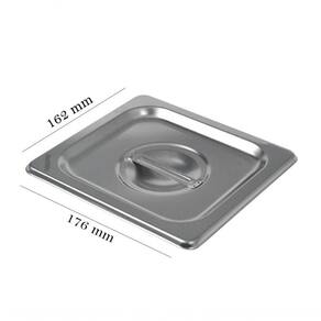 Tampa Em INOX 1/6 Tradicional Para Cubas Gastronômica Inox 1/2 . A Tampa para Cuba GN 1/2 é desenvolvida em aço inoxidável resistente, higiênica e com cantos arredondados que facilitam a limpeza. Possui puxador e é ideal para a utilização conjunta as cubas em buffets e rechauds de cozinhas, restaurantes e refeitórios em geral.