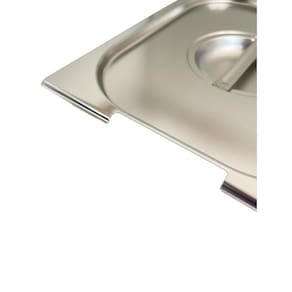 A Tampa Cuba GN 1/2 Com Recorte - Platinox em Aço Inox com Recorte para Alças é a escolha ideal para manter as suas refeições quentes e deliciosas durante o serviço do seu buffet. Este utensílio foi meticulosamente construído em aço inoxidável, garantindo uma vida útil prolongada e apresentando um design que se encaixa perfeitamente em recipientes com alças, oferecendo praticidade adicional.