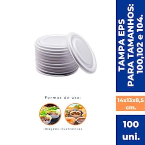 Tampa para Marmitex de Poliestireno com 100 unidades.