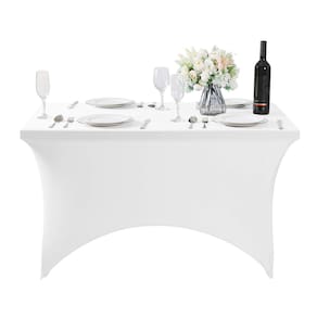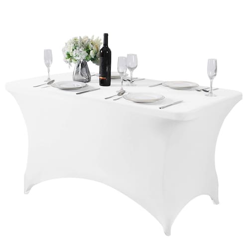 Hezuzo Toalha de mesa de elastano para mesa de 1,2 m, toalha de mesa elástica universal para festas, banquete, casamento e eventos - branca