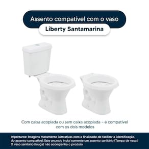 Detalhes e Cuidados Especiais: * Cor: Preto * Compatibilidade: Modelo Liberty da marca Santamarina * Conteúdo da Embalagem: Assento sanitário, parafusos de fixação e instruções de instalação. * Fabricante do Assento Sanitário: Pontto Lavabo.