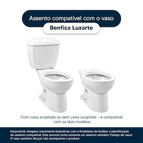 Detalhes e Cuidados Especiais: * Cor: Preto * Compatibilidade: Modelo Benfica da marca Luzarte * Conteúdo da Embalagem: Assento sanitário, parafusos de fixação e instruções de instalação. * Fabricante do Assento Sanitário: Pontto Lavabo.