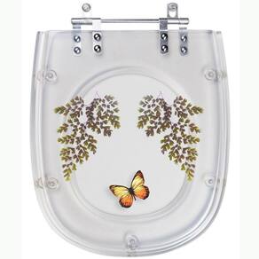 Tampa de Vaso Sanitário Poliester Sabatini Decorada Borboleta é a escolha perfeita para seu banheiro trazendo beleza e praticidade. É compatível com vasos sanitários da linha Sabatini da Icasa, com ou sem caixa acoplada. Não é compatível com outros modelos de vaso sanitário. Este produto é transparente com decoração, fica lindo no banheiro. O assento (parte onde senta) é marmorizado branco e a tampa é transparente com decoração de borboleta. Totalmente impermeável, com acabamento brilhante e ferragem metálica que não enferruja. Instalação rápida e fácil, acompanham os parafusos de fixação e basta apenas uma chave de fenda para montar. Entrega garantida e rastreada com embalagem dupla reforçada. Cor: Transparente Distância entre centros dos furos da louça: 15cm Acabamento: brilhante Dicas: Itens inclusos: assento e tampa em resina de poliéster, ferragem completa para instalação e embalagem dupla reforçada. Limpeza: recomenda-se a limpeza com água e sabão neutro e não utilizar produtos abrasivos ou químicos. Instalação: Sem desmontar o produto, posicione sobre o vaso sanitário e encaixe os dois parafusos com as borrachas pretas dentro dos furos do vaso. Aperte com a chave de fenda no sentido horário até ficar firme. Importante: este anúncio inclui somente o produto conforme descrição acima. Todos os elementos decorativos das fotos não estão inclusos. Observação: O código 6LPF gravado na louça sanitária corresponde ao fluxo de água de uma descarga e não indica o modelo da mesma. Os produtos de poliéster com decoração podem apresentar uma eventual variação em relação as fotos apresentadas, pois tem em seu processo de fabricação uma parte puramente artesanal, o que lhes confere identidade única e absoluta originalidade. Os desenhos da decoração ficam dentro da resina de poliéster, ou seja não deslocam e/ou desbotam com a limpeza. A base da peça é sempre Cristal Transparente e após inserido decorações e cores quando houver.