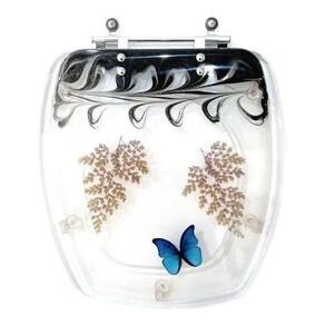 Assento Sanitário fabricado em resina virgem de Poliéster com decoração de Avencas e Borboleta inédita e exclusiva e com acabamento de superfície polido de alto brilho. Ferragem ultrarresistente e que não oxida com elevadíssimo padrão de acabamento. Possui 10 calços de PVC distribuídos na tampa e no assento, que possibilitam total estabilidade sobre a louça. Maciço em resina de Poliéster é totalmente impermeável. Com excepcional durabilidade tem design específico e diferenciado. Projetado para cada modelo de louça com medidas exatas e precisas para o encaixe em seu vaso sanitário. A tampa é transparente com decoração de borboleta. O assento (parte onde senta) é transparente. A decoração é uma transparencia que fica dentro da resina, não sai e não desbota com a limpeza diária. Informações Técnicas: Principais Componentes: Tampa e Assento em Resina Virgem de Poliéster, calços de PVC para assentamento na louça, ferragem em metal inoxidável com sistema de fixação regulável, embalagem dupla reforçada. Modelo: Para louça Thema da marca de louças Incepa Cor: Preto Uso: Para louça Incepa da marca de louças Incepa