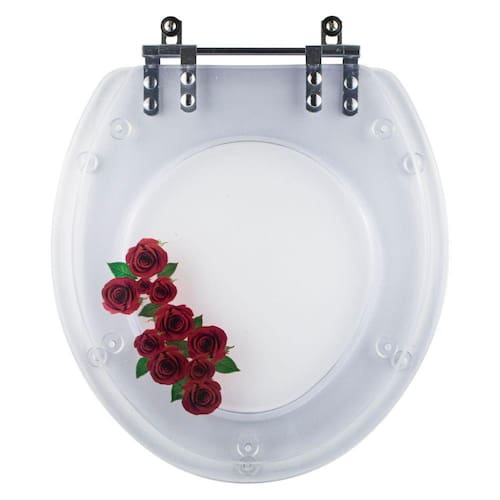 Tampa De Vaso Acrílico Oval Convencional Transparente Decorado com Rosas Vermelhas para Todas as Marcas é a escolha perfeita para seu banheiro. O Assento Sanitário Poliéster é considerado o melhor tipo de assentos sanitários do mercado pelo seu acabamento impecável e excelente durabilidade.