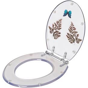 Tampa de Vaso Acrílico Transparente Decorado com Borboleta Azul é a escolha perfeita para seu banheiro. O Assento Sanitário Poliéster é considerado o melhor tipo de assentos sanitários do mercado pelo seu acabamento impecável e excelente durabilidade. Este assento de vaso sanitário é produzido em resina maciça de poliéster Transparente. O poliéster é uma resina semelhante ao acrílico, só que mais robusta / resistente. Por isso, é totalmente impermeável, pode ser lavado com água à vontade. Fácil de limpar. Não acumula sujeira. Compatível com o vaso sanitário modelo Convencional/Oval com ou sem caixa acoplada (é compatível com os dois tipos de vasos). Acompanha parafusos para instalação no vaso. Fácil de instalar, basta apenas uma chave de fenda e fica pronto em menos de um minuto. O encaixe do assento sanitário no vaso é feito por uma ferragem metálica que não oxida e não enferruja. Dicas: Limpeza: recomenda-se a limpeza do assento sanitário poliéster com água e sabão neutro, não utilizar produtos abrasivos. Material: maciço em resina de poliéster. Ferragens metálicas em alumínio anodizado (mesmo material utilizado em box de banheiro, não oxida e não enferruja) Peso: 2,7kg Instalação: sem desmontar o produto, posicione o assento sobre o vaso sanitário. Então encaixe os parafusos com a borracha preta dentro dos furos do vaso, e depois aperte com uma chave de fenda até ficar bem firme no vaso. Ao apertar com a chave de fenda, a porca irá subir e pressionar a borrachinha preta, que irá prender por pressão nos furos do vaso. Importante: este anúncio inclui somente um assento sanitário conforme descrito acima. Todos os elementos decorativos das fotos não acompanham o produto.