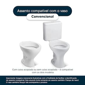 Compatível com o vaso sanitário Hervy modelo Convencional/Oval com ou sem caixa acoplada.