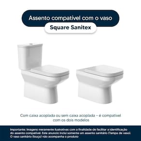 Instalação Simples e Rápida: Com todos os parafusos e componentes necessários inclusos, a instalação é rápida e descomplicada. Seu novo assento estará pronto para uso em questão de minutos. Desenvolvido especificamente para o modelo Square da marca Sanitex, com ou sem caixa acoplada, proporciona um encaixe perfeito, oferecendo estabilidade e conforto durante o uso.