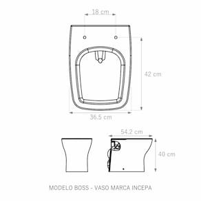 Assento Sanitário (tampa de vaso) fabricado em madeira MDF com pintura laqueada, com proteção raios UV, que garante excelente acabamento e durabilidade. Compatível com vasos (bacias/louças) sanitários com ou sem caixa acoplada. Tem calços de PVC instalados na tampa e no assento para proporcionar estabilidade ao uso, pois distribui o peso uniformemente sobre a louça sanitária. Montagem simples e fácil. Possui ferragem em alumínio anodizado que não enferruja/oxida e oferece muita resistência. O assento é acompanhado por parafusos para instalação. Embalagem dupla reforçada garante o recebimento do produto totalmente protegido. Especificações: - Dimensões da caixa: largura: 51,50cm. Altura: 4,00cm comprimento: 38,00cm - Peso do produto: 1,98kg - Acabamento: brilhante - Uso: este assento é adequado para uso na louça Incepa modelo Boss - Garantia: 3 meses - Itens inclusos: Tampa e assento com calços de PVC, ferragem inoxidável, embalagem duplamente reforçada. Contém todos os parafusos e encaixes para instalação, sendo necessária somente uma chave de fenda para instalar o produto na louça sanitária. Instalação:posicione o produto, devidamente centralizado, em cima do vaso sanitário. Sem desmontar a ferragem, insira as buchas de borracha dentro dos furos da bacia sanitária. Utilizando uma chave de fenda, aperte o parafuso no sentido horário até que o assento esteja firme no vaso. Manutenção: recomendamos a limpeza periódica com pano levemente umedecido com sabão neutro. Não usar esponjas abrasivas ou palha de aço nem qualquer tipo de produto químico.