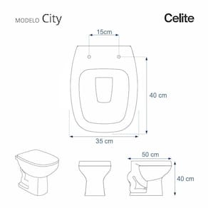 Assento Sanitário (tampa de vaso) para vaso Celite modelo City / City Plus com ferragem dourada. Com design que acompanha o formato do vaso, o assento sanitário City é a escolha perfeita para renovar seu banheiro com ainda mais beleza e praticidade. Assento sanitário laqueado com perfeito acabamento. Possui camada extra de verniz para maior durabilidade. Ferragem metálica em alumínio anodizado, que não oxida. Compatível com vasos com ou sem caixa acoplada. Fácil de instalar, já vem pronto e completo para encaixe no vaso sanitário. Embalagem dupla reforçada garante a chegada do produto em perfeitas condições. Informações Técnicas: Principais Componentes: Tampa e Assento em MDF maciço, calços de PVC para assentamento na louça, ferragem em metal inoxidável com sistema de fixação regulável, embalagem dupla reforçada. Modelo: City / City Plus Disponível no: Branco Uso: Para louça Celite Peso: 2kg Dimensões da Caixa: 54 cm x 42 cm x 5 cm Ean: 7899983674987